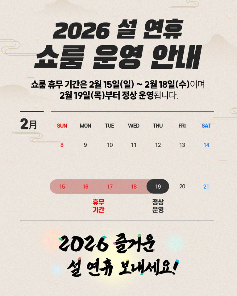 2026 설 연휴 배송 및 쇼룸 운영 안내